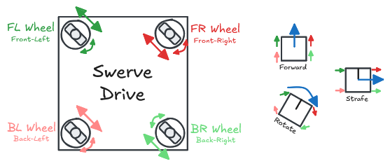 - The robot can move forward/backward by moving the wheels forward/backward
