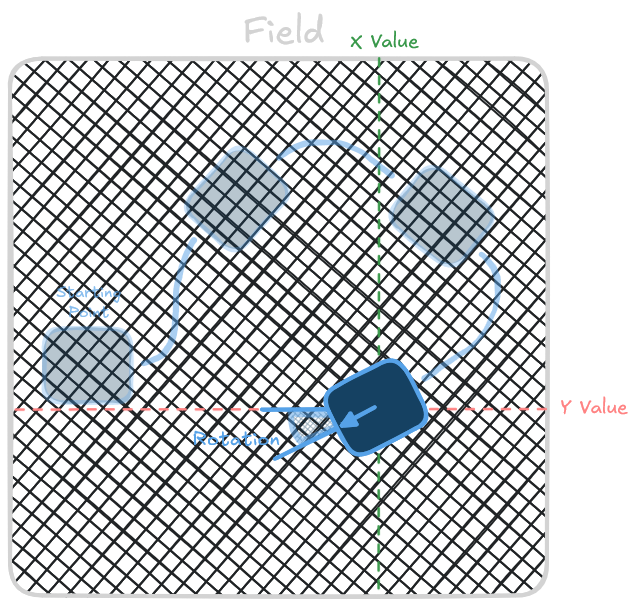 The Pose provides x and y coordinates (in inches) representing the robot's position, as well as a heading (in degrees) representing the robot's orientation.